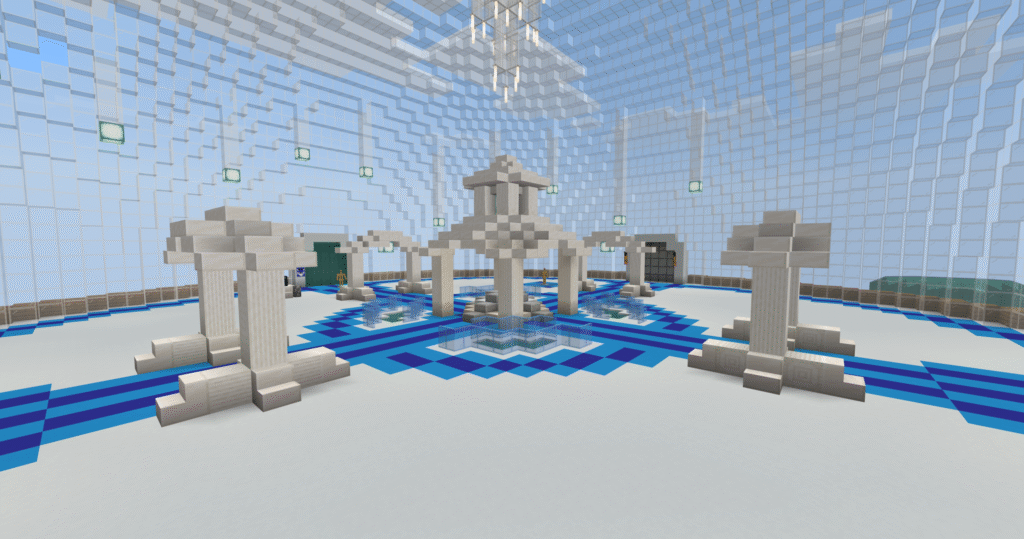 В данном месте можно весело проводить время с друзьями, проводить мероприятия или настоящие бои. не бойтесь провести схватку и выяснить. кто из вас в большей степени владеет оружием в мире Майнкрафт на телефоне!