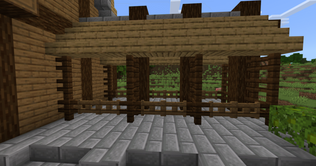 Постройка «Огороженный дом» — предлагает игрокам возможность исследовать и взаимодействовать с оригинальным домом, окруженным красивым забором и живописным ландшафтом в мире Майнкрафта на телефоне.