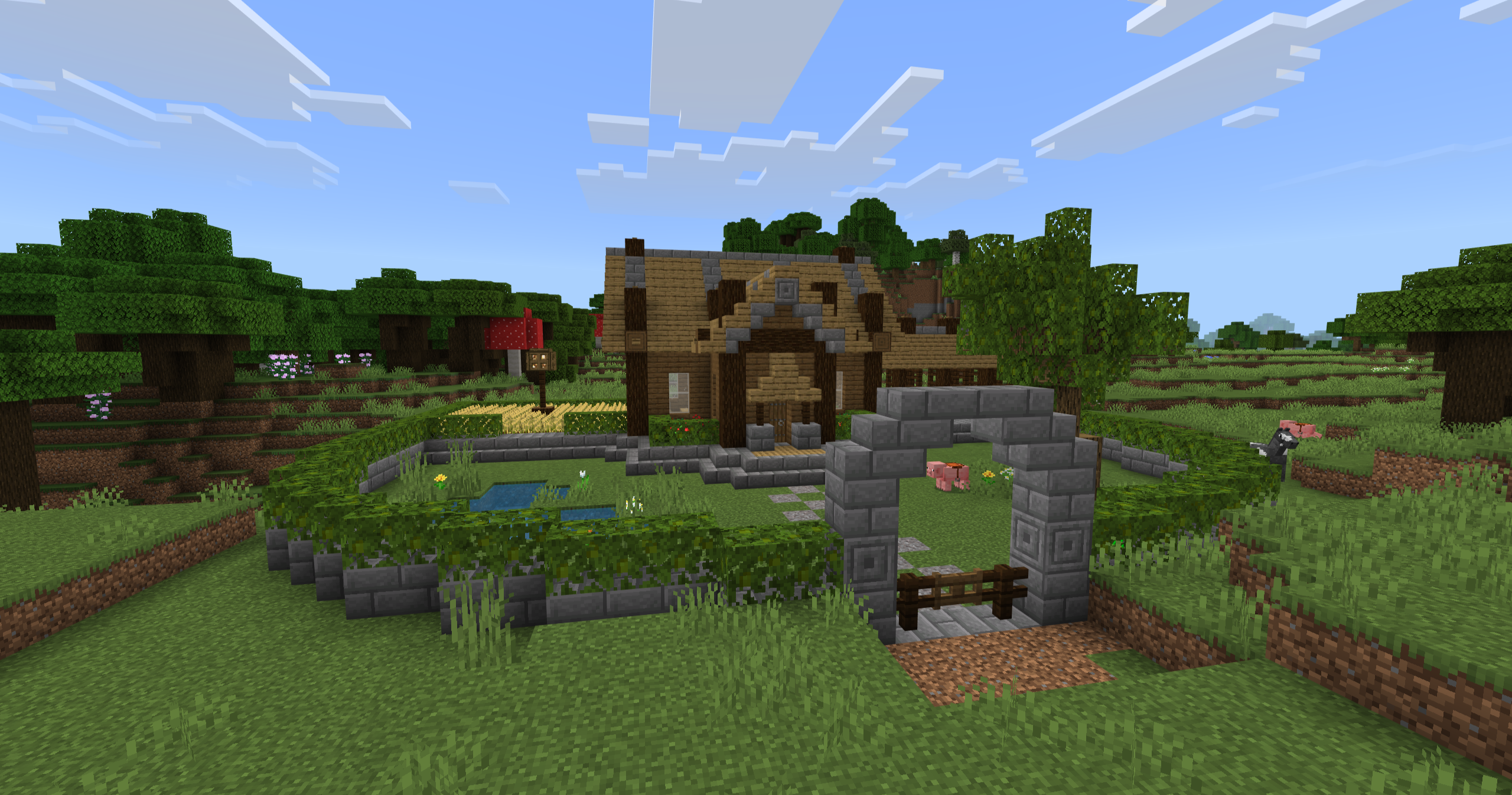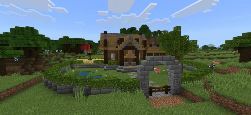 Постройка «Огороженный дом» — предлагает игрокам возможность исследовать и взаимодействовать с оригинальным домом, окруженным красивым забором и живописным ландшафтом в мире Майнкрафта на телефоне.