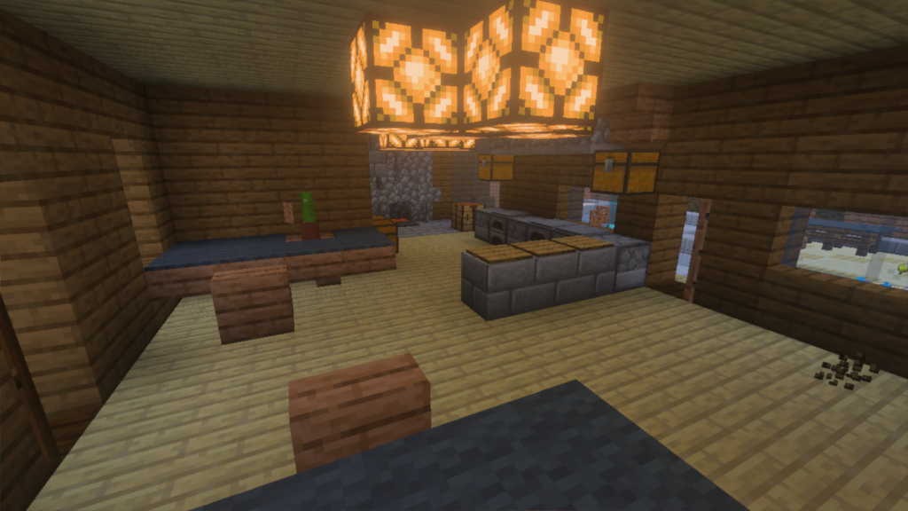 Территория дома разнообразна и красочна, создает уют и располагает к игре всех игроков, которые посетили данную постройку. Внутри дом достаточно просторный для жизни нескольких игроков, но, как и полагается в деревне, обустройство инвентаря не пестрит различными красками.