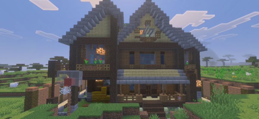 Постройка «Дом для деревни» отличный вариант для тех, кто устал от городской суеты и хотел бы погрузиться в атмосферу во вселенной Майнкрафта на телефоне.