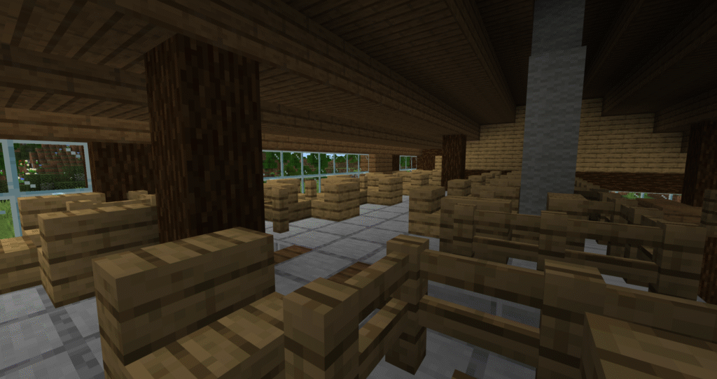 Здание создано исключительно из качественных материалов и наполнено огромным количеством мест. Автор постарался передать максимум, но в мире Minecraft PE.