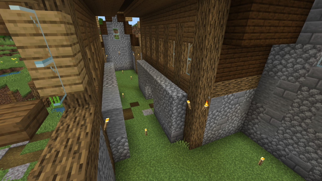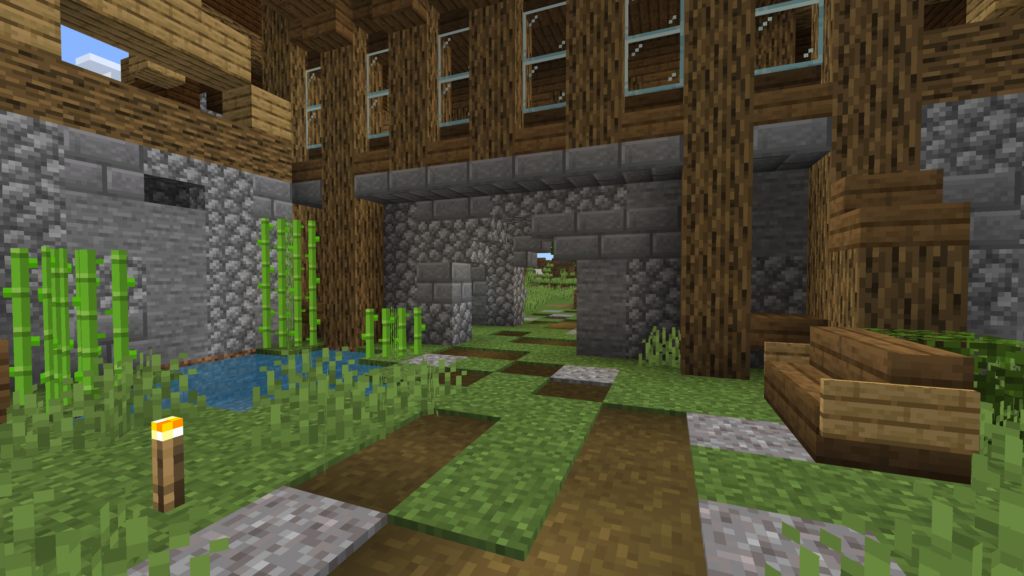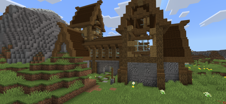 Разрушенные стены, обветшалые комнаты создают уникальную атмосферу в кубической вселенной Майнкрафта на телефоне.