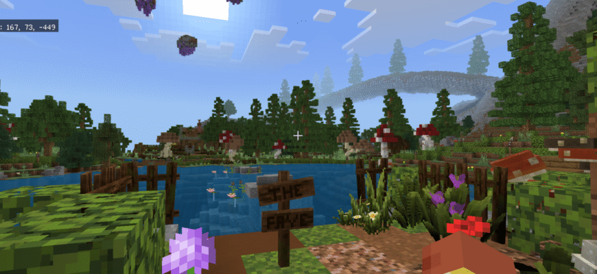 Карта «Сад Фей» это магическое место, где каждый уголок наполнен чудесами. Карта представляет собой обширный сад, полный ярких цветов, необычных деревьев и сказочных существ в Майнкрафт на телефоне.