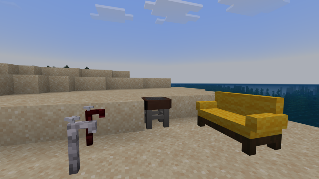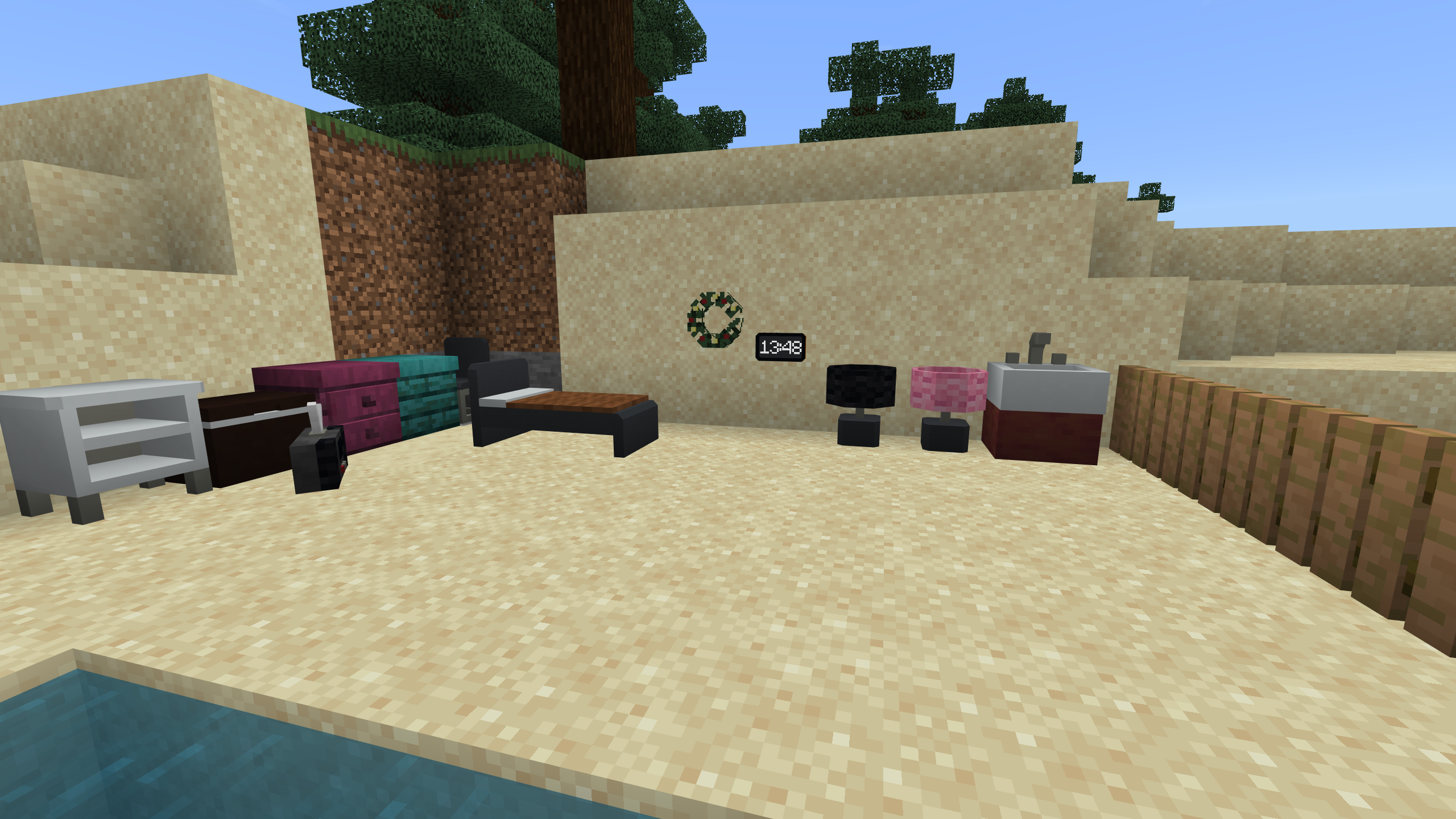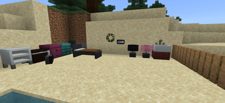 Мод «Мебельное царство» — это специальное дополнение для Майнкрафта на телефоне, которое добавляет в игру более 100 новых предметов. С помощью этого мода вы сможете обустроить свои дома, квартиры и даже общественные здания, добавив такие элементы, как столы, стулья, диваны, кровати, шкафы и многое другое!