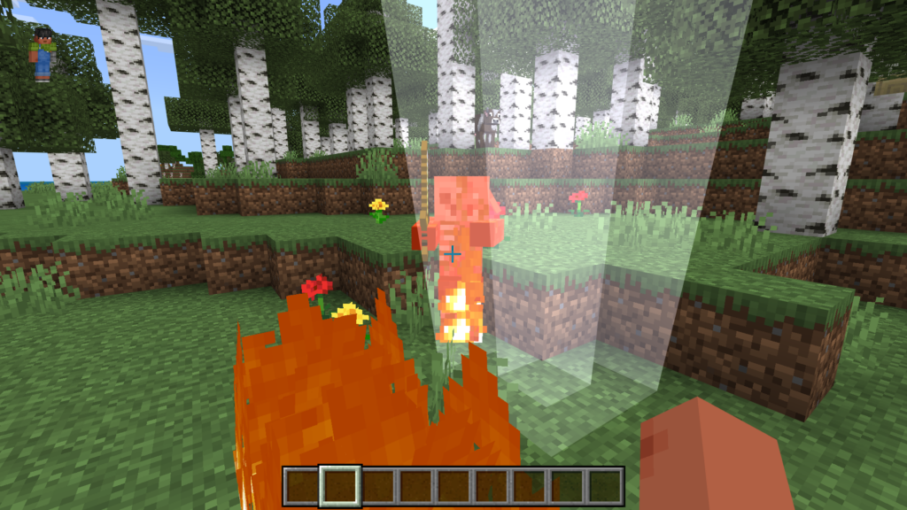 - При зажатии клавиши шифт вокруг будет появляться огонь и поджигать все на своем пути.