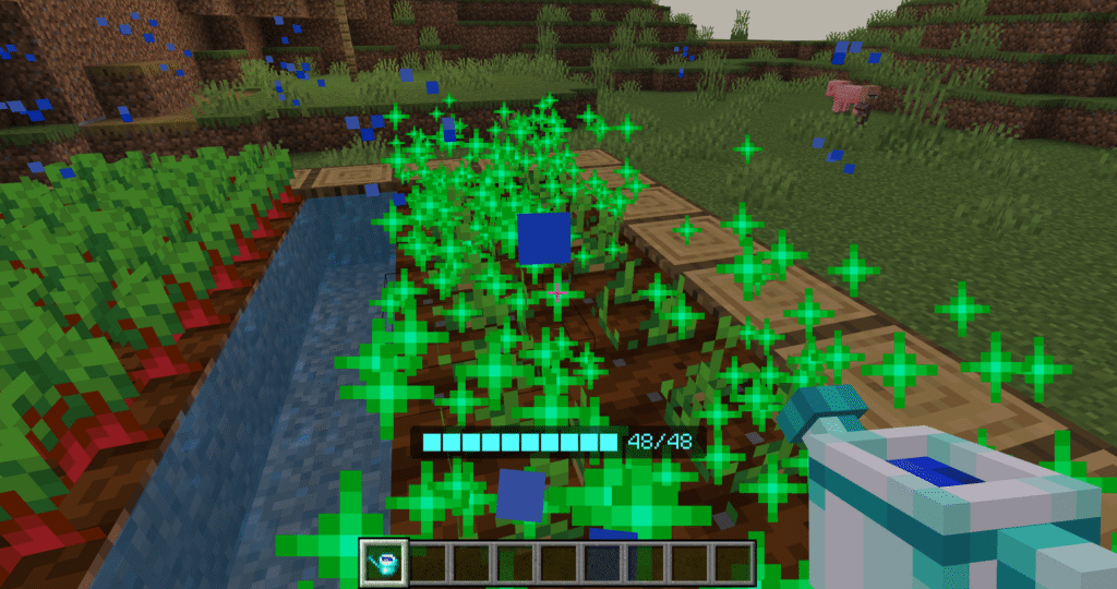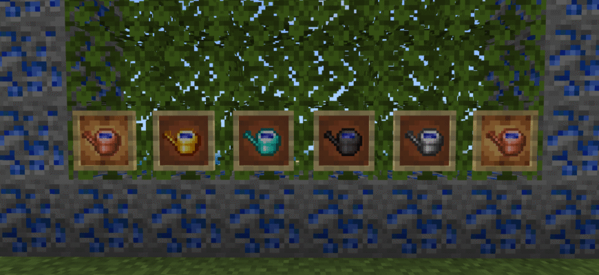 Мод «Волшебная лейка» — это специальный инструмент, который позволяет игрокам легко и быстро поливать растения, улучшая их рост и развитие в мире Майнкрафт на телефоне.