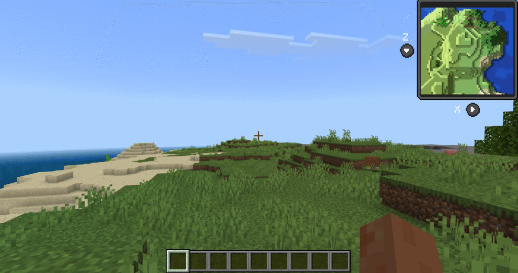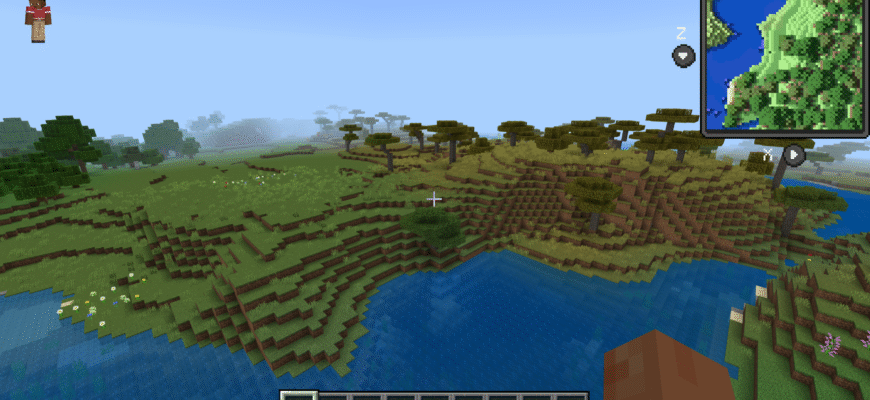 Благодаря моду “Мини-карта“, игроки получают уникальную возможность изучать местность и прогресс изучения территорий в мире Майнкрафта на телефоне.
