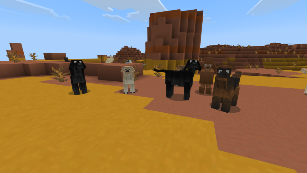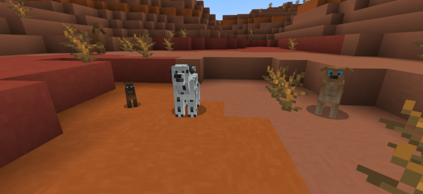 Мод «Новые породы псов» предназначен для игроков Майнкрафт на телефоне и добавляет в игру несколько новых пород собак, каждая из которых обладает уникальными внешним видом.