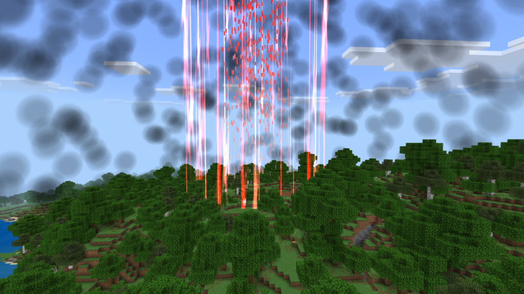 Пушка может наносить колоссальный урон как мобам, так и блокам. При использовании пушки вы можете наблюдать за зрелищными эффектами, такими как взрывы и огненные шары, что добавляет игре динамичности.