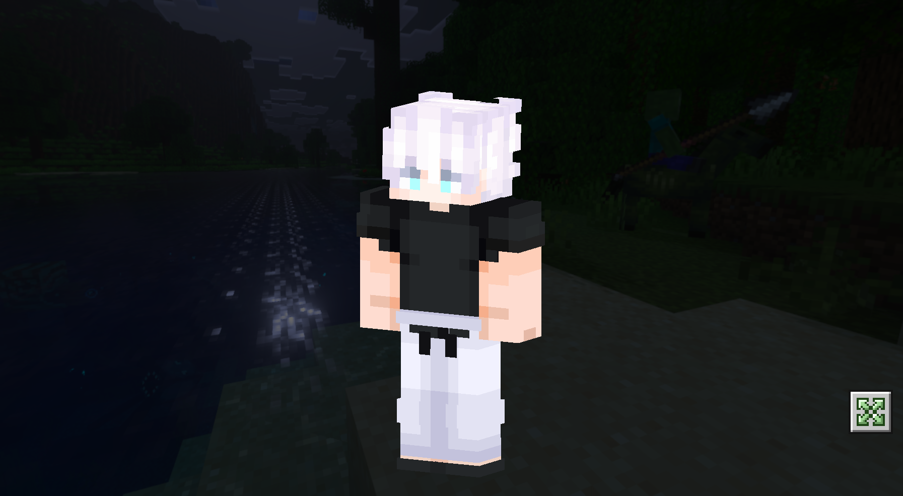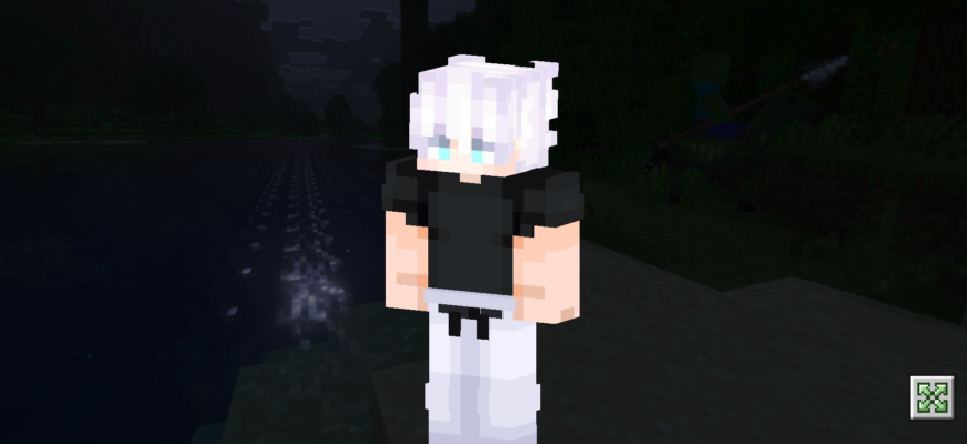 Прибыл Годжо Сатору! Совершенно новый скин для вашей кубической вселенной Майнкрафта на телефоне, позволяющий вам стать главным персонажем популярнейшего аниме современного времени.
