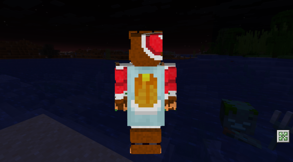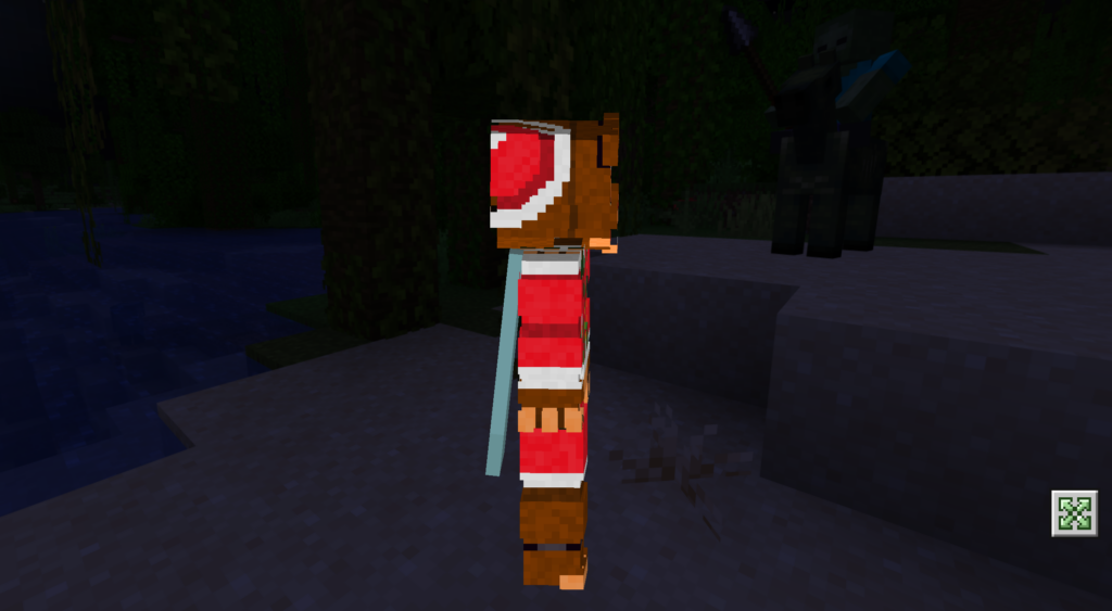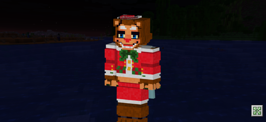 Скин «Новогодний ужастик» представляет собой персонажа, который выглядит как будто сошел с обложки рождественского мультфильма ужасов и стал доступен в мире Майнкрафта на телефоне!