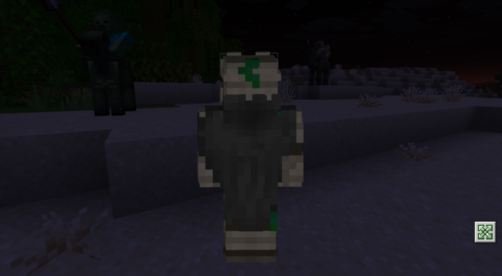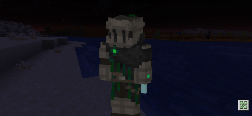 Скин «Темный рыцарь» представляет собой мрачный и стильный образ, который идеально подходит для игры в ночное время или в подземельях кубической вселенной Майнкрафта на телефоне.