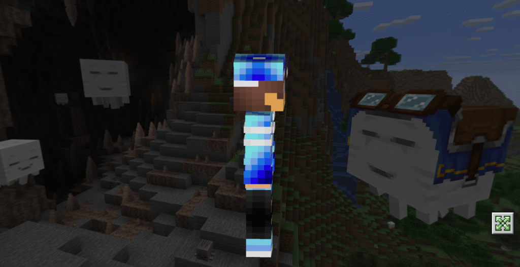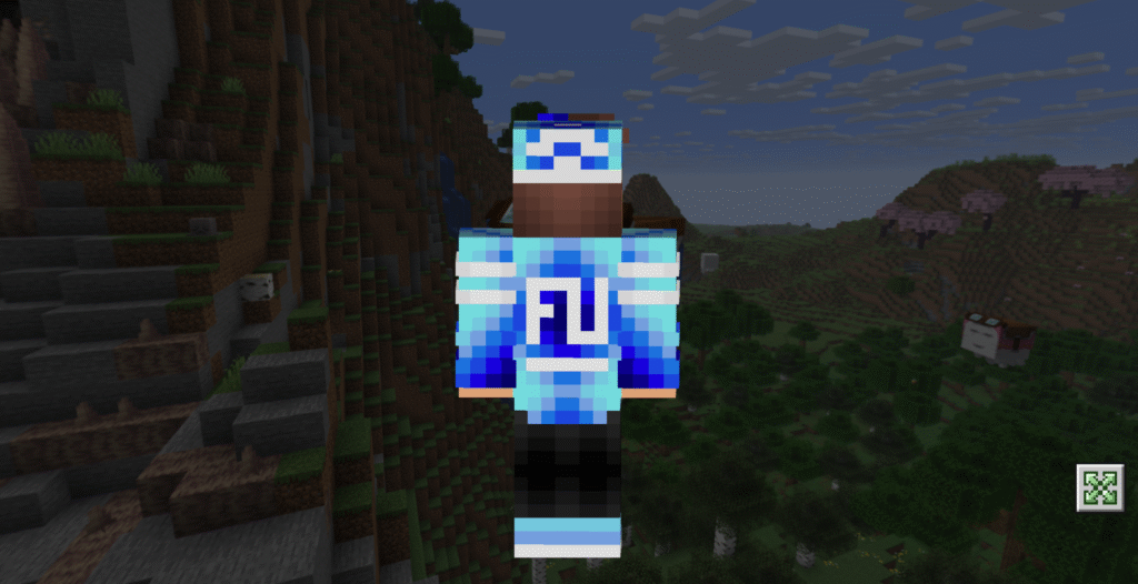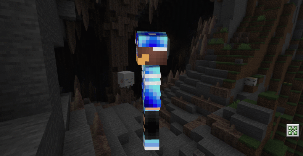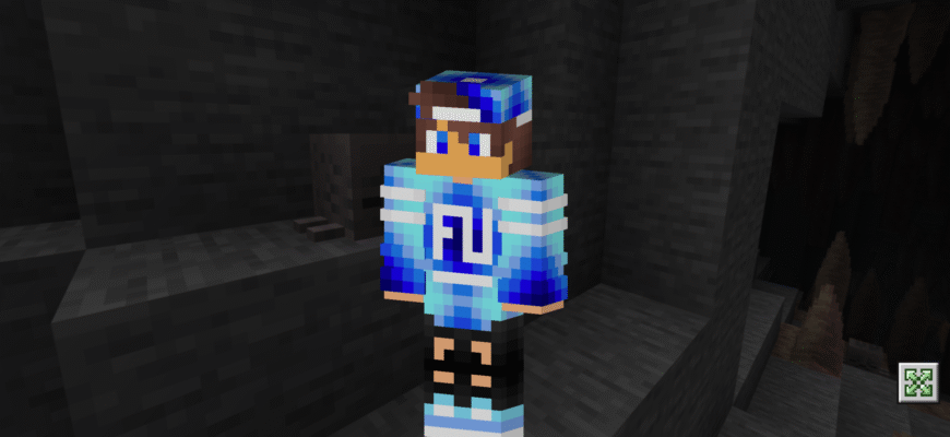 Яркий синий цвет добавляет игривости и свежести, а также позволяет легко заметить персонажа в многолюдных местах Minecraft PE.